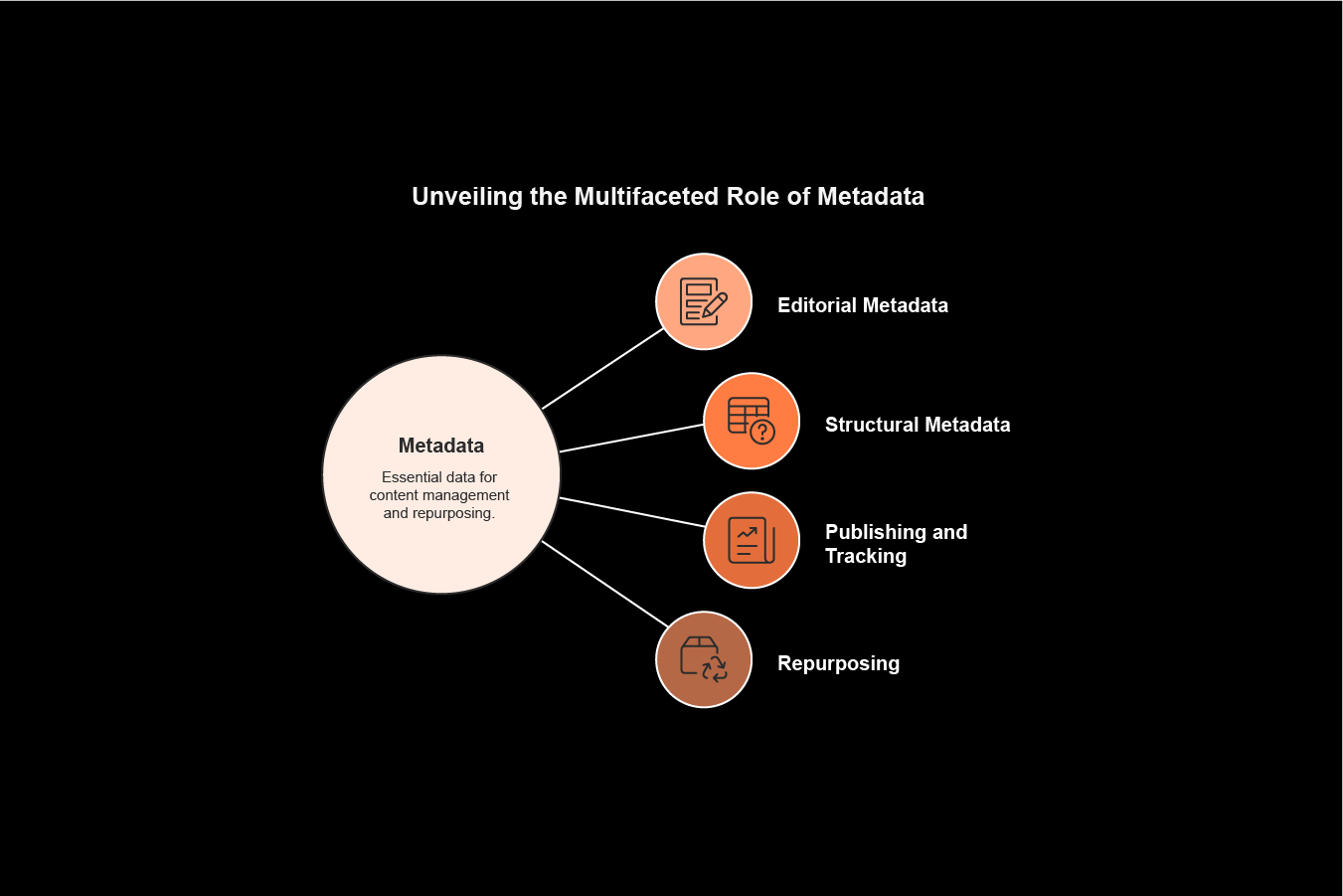 Metadata - Essential data for content management and repurposing.