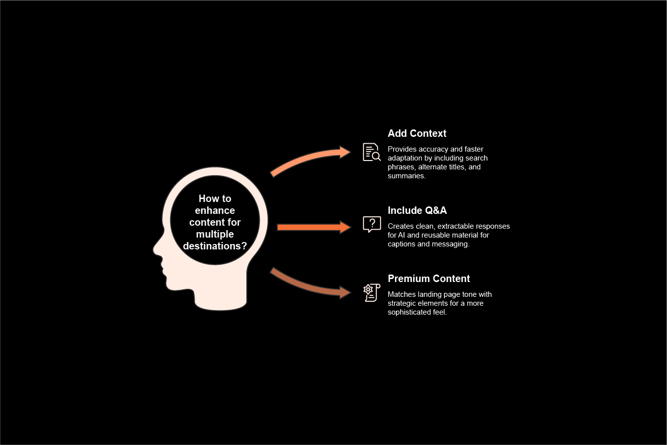 If a section includes a data point or claim, maintain attribution in the derivative content where possible. This improves credibility and reduces generic-looking output.