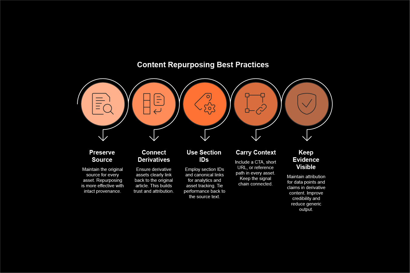 Every derivative asset should clearly connect back to the original article. That improves trust, creates attribution clarity, and strengthens the role of the article as the canonical source.