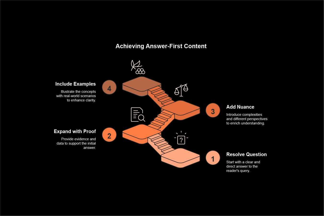 1. Resolve Question - Start with a clear and direct answer to the reader's query.