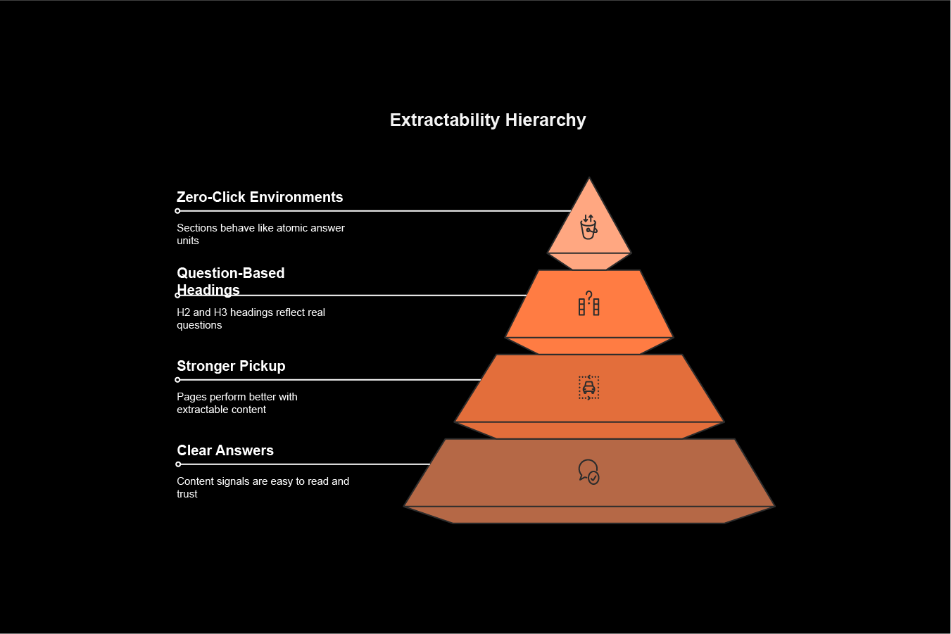 Pages perform better when their signals are easier to read, easier to trust, and easier to extract. Structuring content for extractability helps search engines, AI systems, and users reach the core answer faster, while strengthening the page’s wider visibility, reuse, and citation potential.